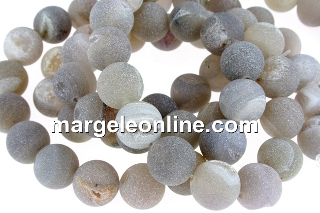 Margele agate naturale frosted, forma: rotund, marime: 12mm, prezinta cavitati si incluziuni naturale specifice. Pretul se refera la 1 sirag de 40cm.