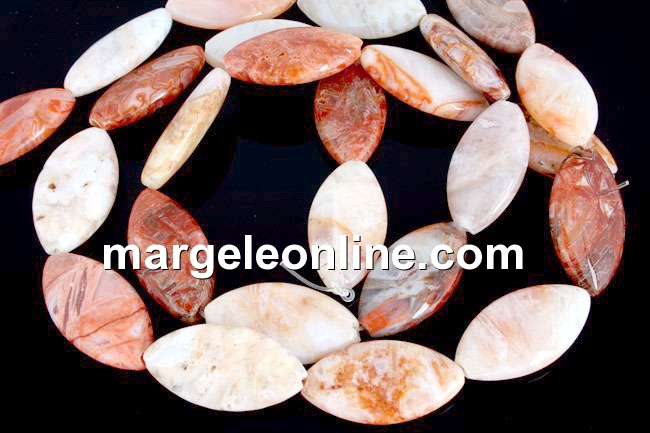 Margele agata Morocco, forma: marchiza plata, marime: 30x15mm. Pretul este pentru un sirag de 40cm cu 14 margele.