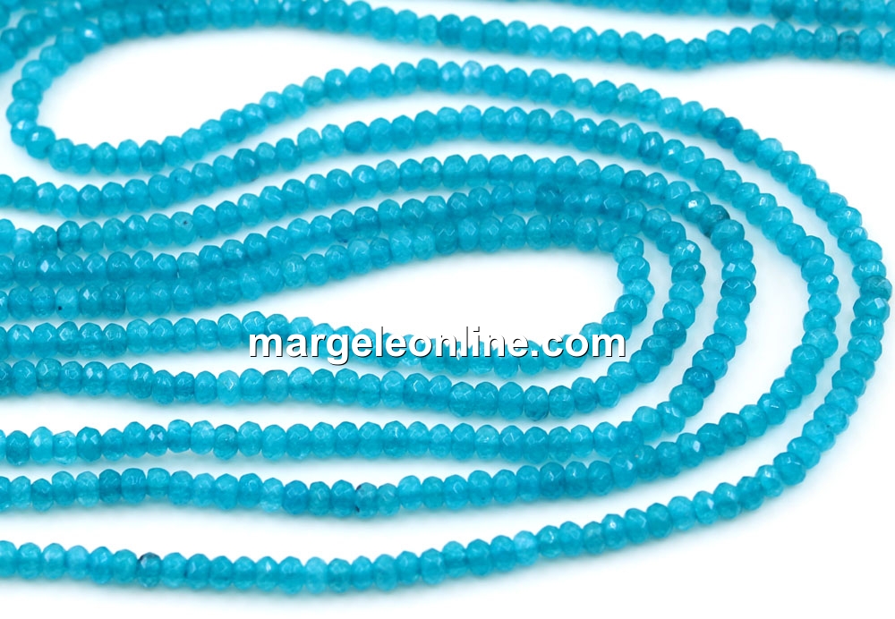 Margele Agate, rondele fatetate, turcoaz, 3mm