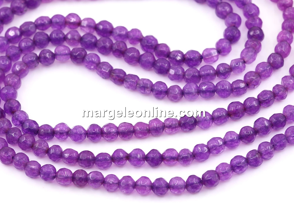 Margele Agate, rotund fatetat, fucsia, 4mm