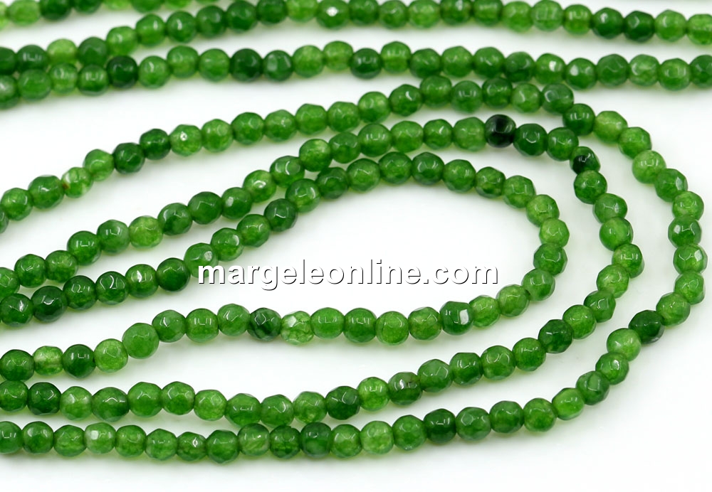Margele Agate, rotund fatetat, verde padure, 3mm