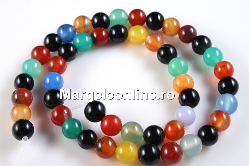 Margele agate, sirag multicolor, forma: rotund, marime: 6.5mm. Pretul este pentru un sirag de 38 cm.