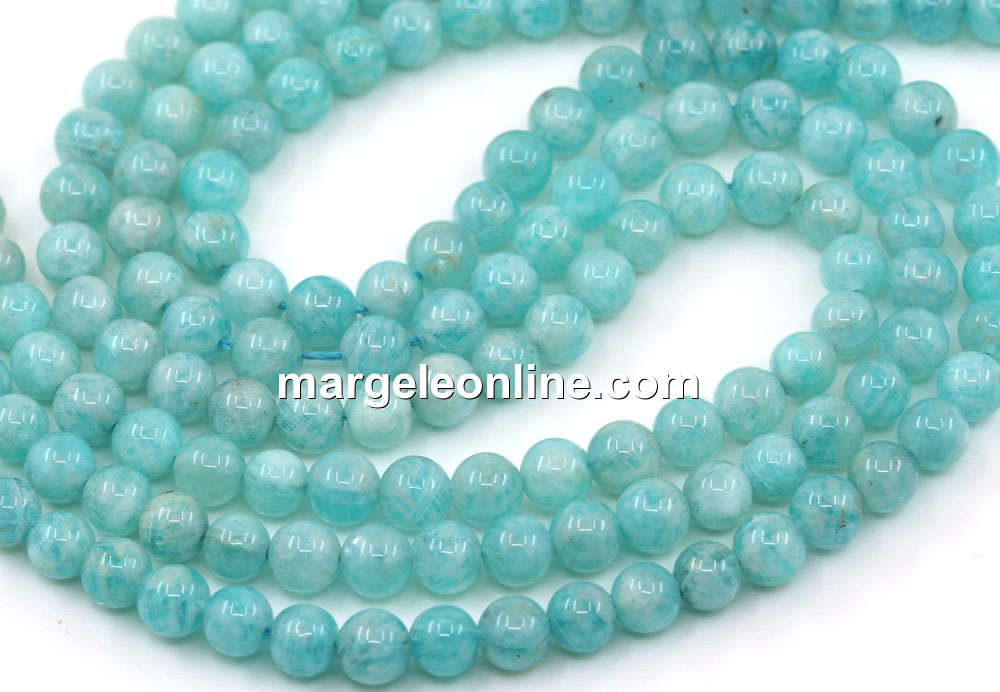 Margele amazonit peruvian, forma: rotund, marime: 5.5mm, lungime sirag: 40cm. Pretul este pentru un sirag fara sistem de inchidere.