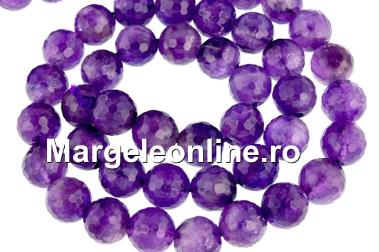 Margele ametist intens natural, forma: rotund fatetat, marime: 6mm, lungime sirag: 40cm. Pretul este pentru un sirag.