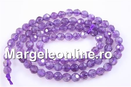 Margele ametist natural, forma: rotund fatetat, marime: 4mm, lungime sirag: 38.5cm. Pretul este pentru un sirag.