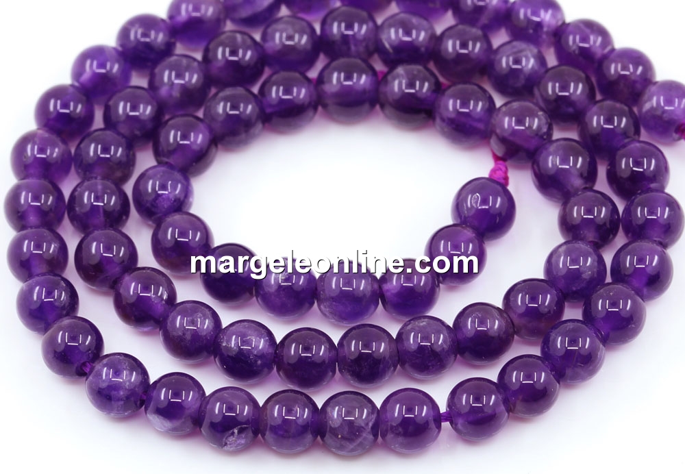 Margele ametist, forma: rotund, marime: 6mm, lungime sirag: 38cm. Pretul este pentru un sirag fara sistem de inchidere.