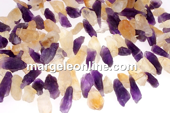Margele ametist si citrin, piatra naturala bruta, forma: neregulata, marime: 13-27mm. Pretul este pentru un sirag de 40-41cm.