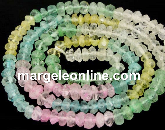 Margele beril multicolor, piatra naturala, forma: rondela fatetata, marime: 3-4x1.5-2.5mm. Pretul este pentru un sirag de 36cm.