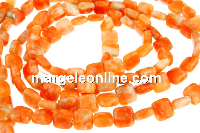 Margele calcit portocaliu, forma: patrat plat, marime: 8x8x4mm. Pretul este pentru un sirag de 37cm.