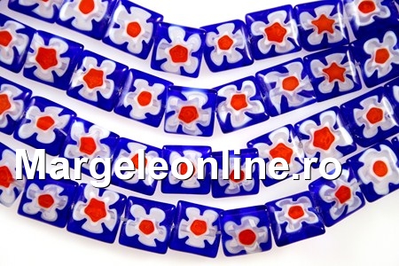 Margele chevron, patrat, albastru cu rosu, 10mm