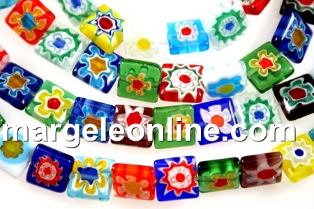 Margele sticla chevron, forma: patrat, marime: 10x3.5mm, multicolor. Pretul se refera la 1 sirag fara incuietoare de 40cm cu aproximativ 40 margele.