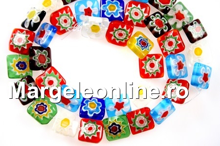 Margele sticla chevron, forma: patrat, marime: 10x3.5mm, multicolor. Pretul se refera la 1 sirag fara incuietoare de 40cm cu aproximativ 40 margele.