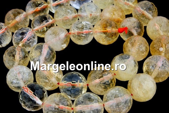 Margele citrin natural, forma: rotund microfatetat, marime: 12mm, lungime sirag: 39-40cm. Pretul este pentru un sirag.