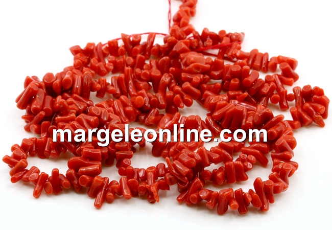 Margele coral natural, culoare: rosu somon intens, marime: 6-10x3-3.5mm, greutate: 25.5grame. Pretul se refera la un sirag de 48cm.