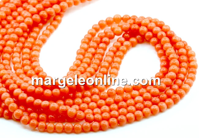 Margele coral, culoare: portocaliu, forma: rotund, marime: 4mm. Pretul se refera la un sirag de cca 39-40cm.