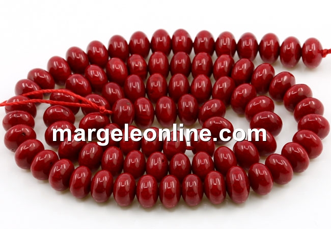 Margele coral, culoare: rosu intens, forma: rondela, marime: 7x4.5mm. Pretul se refera la 1 sirag de 38-39cm.