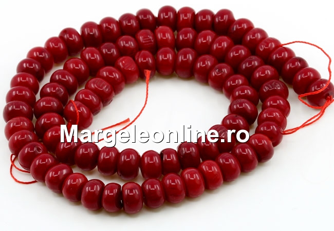 Margele coral, culoare: rosu intens, forma: rondela, marime: 8x5mm. Pretul se refera la 1 sirag de 39cm.