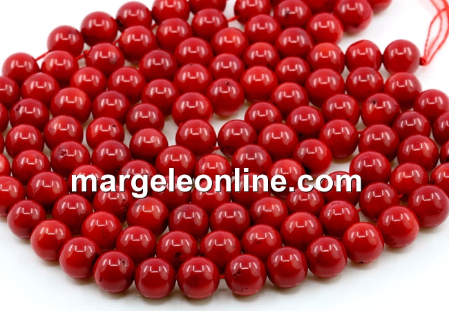 Margele coral, culoare: rosu intens, forma: rotund, marime: 10mm, margelele prezinta incluziuni si cavitati specifice coralului natural . Aceste "imperfectiuni" sunt apreciate de clientii care doresc o noata de originalitate pentru bijuterii. Pretul se refera la un sirag de cca 40cm.