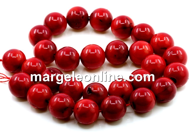 Margele coral, culoare: rosu intens, forma: rotund, marime: 14mm, margelele prezinta incluziuni si cavitati specifice coralului natural . Aceste "imperfectiuni" sunt apreciate de clientii care doresc o noata de originalitate pentru bijuterii. Pretul se refera la un sirag de cca 40cm.