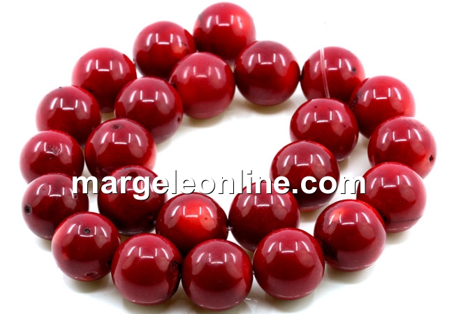 Margele coral, culoare: rosu intens, forma: rotund, marime: 17mm, margelele prezinta incluziuni si cavitati specifice coralului natural . Aceste "imperfectiuni" sunt apreciate de clientii care doresc o noata de originalitate pentru bijuterii. Pretul se refera la un sirag de cca 40cm.