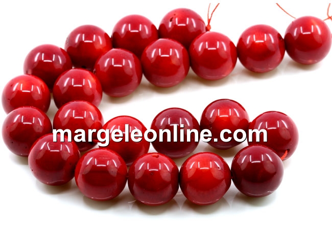 Margele coral, culoare: rosu intens, forma: rotund, marime: 18.5mm, margelele prezinta incluziuni si cavitati specifice coralului natural . Aceste "imperfectiuni" sunt apreciate de clientii care doresc o noata de originalitate pentru bijuterii. Pretul se refera la un sirag de cca 40cm.