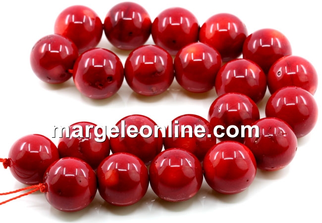 Margele coral, culoare: rosu intens, forma: rotund, marime: 18mm, margelele prezinta incluziuni si cavitati specifice coralului natural . Aceste "imperfectiuni" sunt apreciate de clientii care doresc o noata de originalitate pentru bijuterii. Pretul se refera la un sirag de cca 38cm.