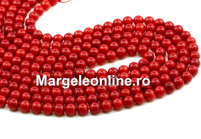 Margele coral, culoare: rosu intens, forma: rotund, marime: 6mm, margelele prezinta incluziuni si cavitati specifice coralului natural . Aceste "imperfectiuni" sunt apreciate de clientii care doresc o noata de originalitate pentru bijuterii. Pretul se refera la un sirag de cca 40cm.