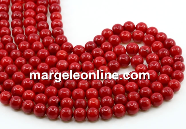 Margele Coral, rosu, rotund, grad A, 8mm