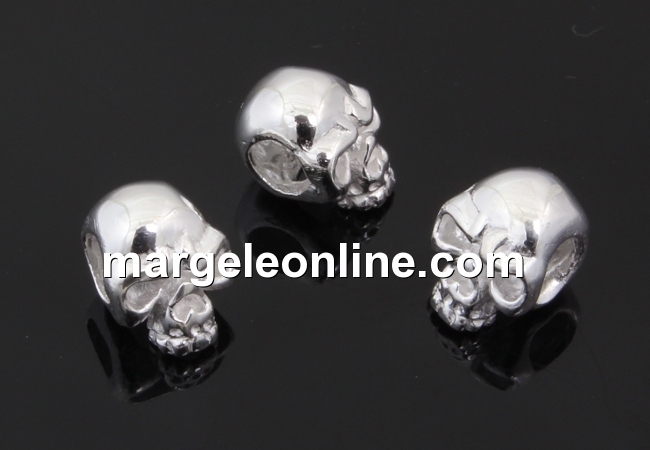 Margele craniu argint 925, marcat, dimensiune totala: 8x6mm, orificiu 2.7mm. Pretul este pentru 1 bucata.