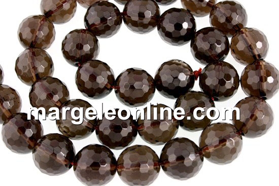 Margele cuart natural fumuriu intens, forma: rotund fatetat, marime: 12mm. Pretul se refera la 1 sirag de 39-40cm.
