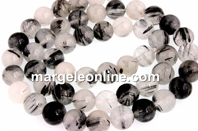 Margele cuart turmalinat natural, forma: rotund, marime: 4mm. Pretul se refera la 1 sirag de 40cm.