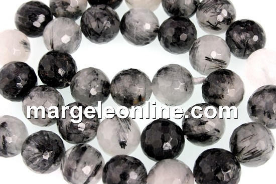 Margele cuart turmalinat, forma: rotund fatetat, marime: 14mm. Pretul se refera la 1 sirag de 37cm.