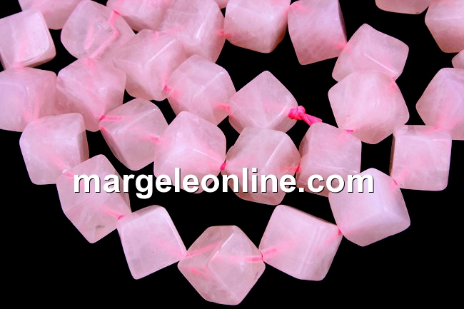 Margele cuart roz, forma: cub neregulat, marime: cca 12x8x8mm. Pretul este pentru un sirag de 40cm.
