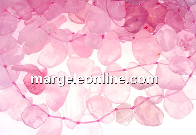Margele cuart roz, piatra naturala bruta, forma: neregulata, marime: 21-25mm. Pretul este pentru un sirag de 40-41cm.