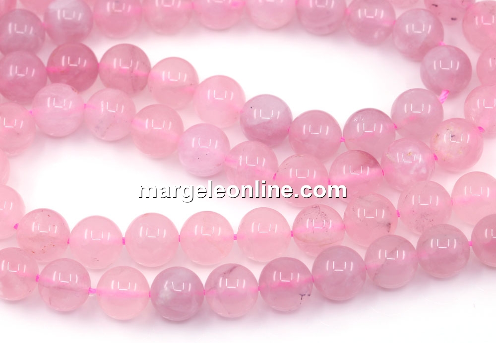 Margele cuart roz, forma: rotund, marime: 8mm, lungime sirag: 39cm. Pretul este pentru un sirag fara sistem de inchidere.