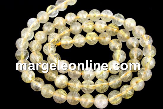 Margele cuart rutilat, forma: rotund, marime: 6mm. Pretul este pentru un sirag cu de 40cm.