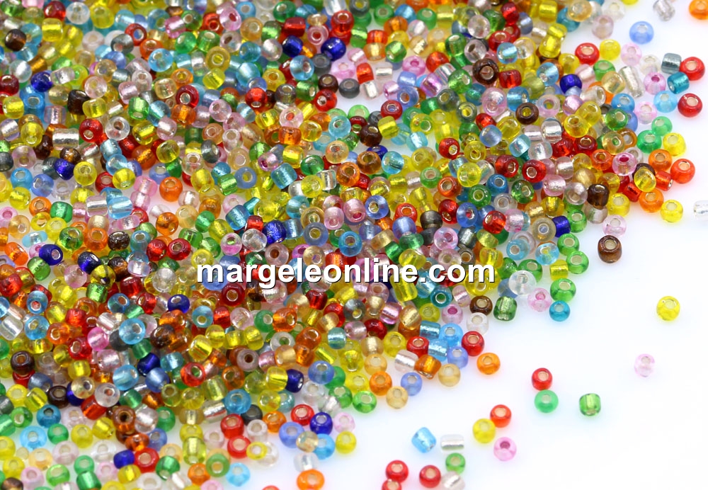 Margele de nisip, mix silver line, dimensiune cca 2mm. Pretul este pentru 100 grame.