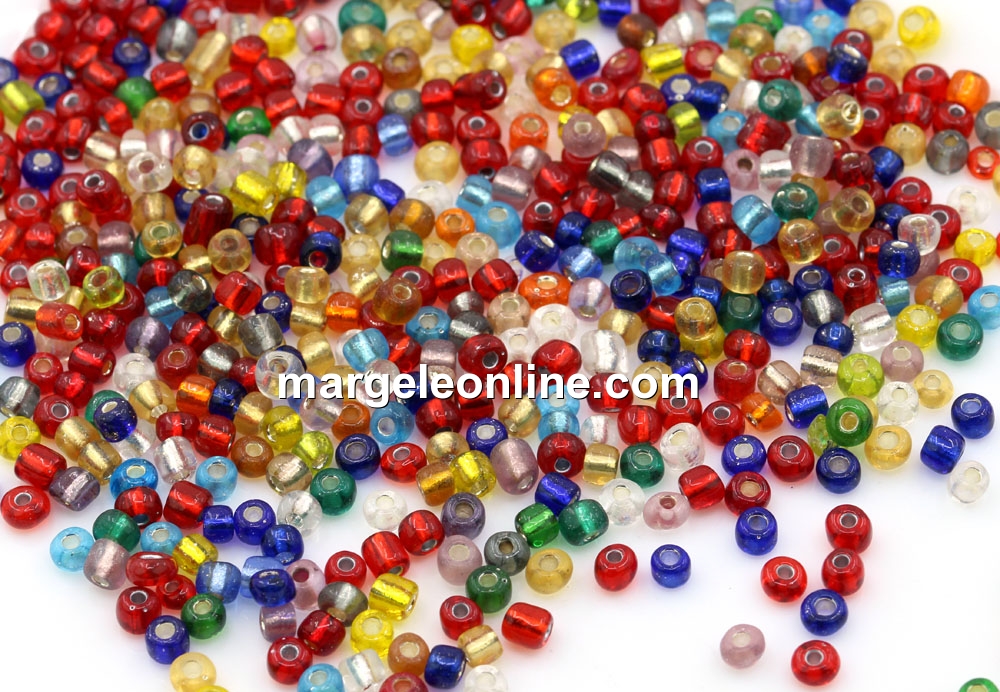 Margele de nisip, mix silver line, dimensiune cca 4mm. Pretul este pentru 100 grame.