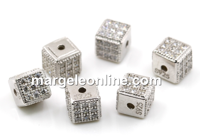 Margele decor cu cristale, forma: cub, material: argint 925 rodiat, marcat, dimensiune: 5.5mm si orificiu 1mm. Pretul se refera la 1 bucata.