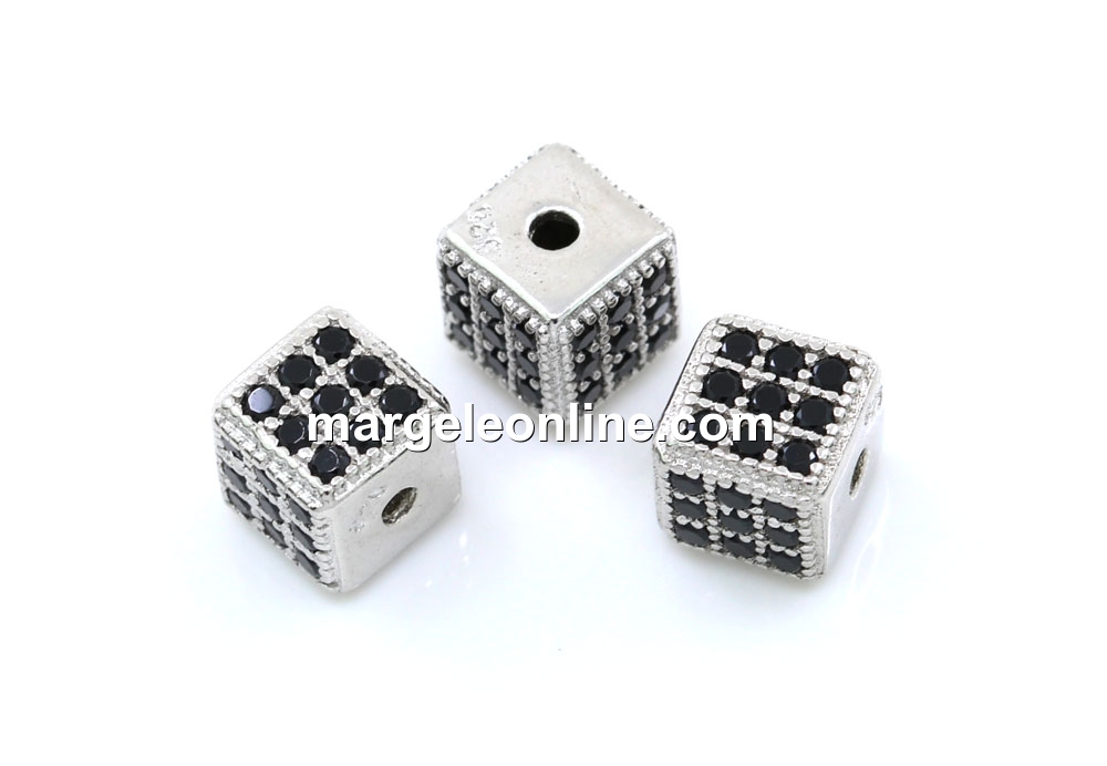 Margele decor cu cristale, forma: cub, material: argint 925 rodiat, marcat, dimensiune: 5.5mm si orificiu 1mm. Pretul se refera la 1 bucata.