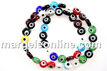 Margele sticla lampa lucrate manual, neuniforme, forma: disc, marime: 8x4mm, culoare: multicolor. Pretul se refera la 1 sirag fara incuietoare de 40cm.