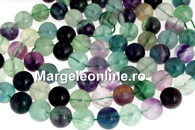Margele fluorit natural, forma: rotund, marime: 14mm. Pretul este pentru un sirag de 39cm.