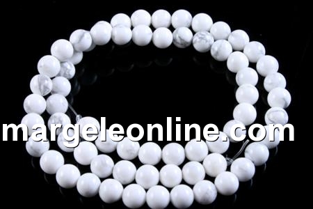 Margele haolit alb, forma: rotund, marime: 6.5mm, lungime sirag: 40cm. Pretul este pentru un sirag cu cu aproximativ 62 margele.