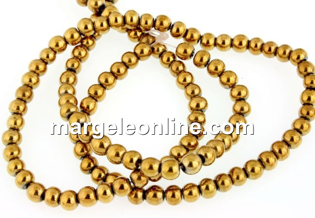 Margele hematit auriu, forma: rotund, marime: 3.3mm. Pretul este pentru un sirag cu de 40cm.
