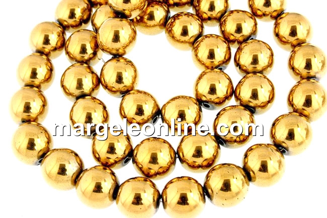 Margele hematit auriu, forma: rotund, marime: 8mm. Pretul este pentru un sirag de 40cm.
