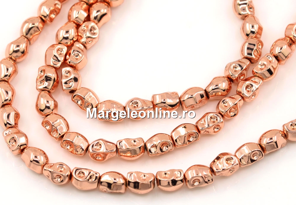 Margele Hematit, craniu, rose gold, 6mm