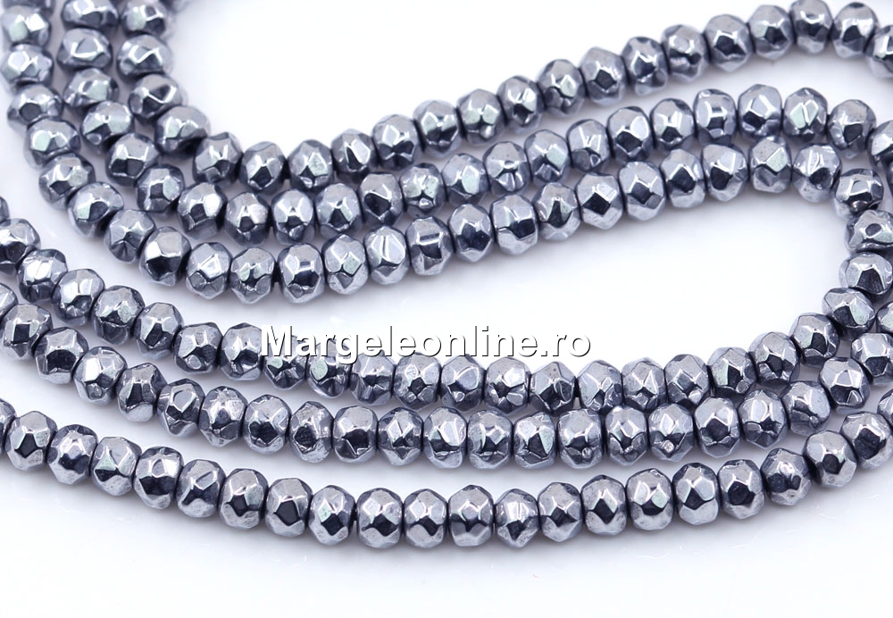 Margele Hematit, rondela fatetata, argintiu intens, 3.5mm