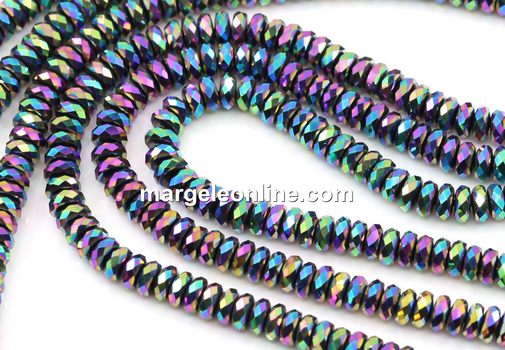 Margele Hematit, rondela fatetata, rainbow, 4mm