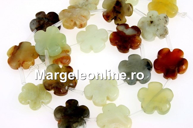 Margele jad floral natural, forma: floare, marime: 15.5x5.5mm. Pretul se refera la 1 sirag de 39cm cu 20 margele.