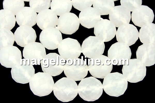Margele jad, culoare: alb translucent, forma: rotund fatetat, marime: 10mm, lungime sirag: 40cm. Pretul este pentru un sirag.